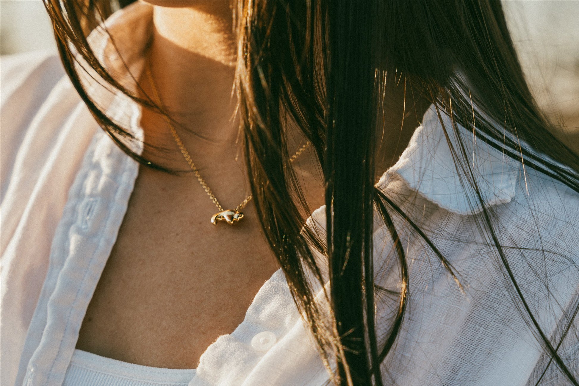 Bison pendant measures 1/2" X 1/4", chain is 16" long.